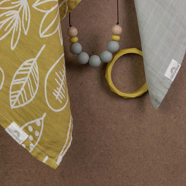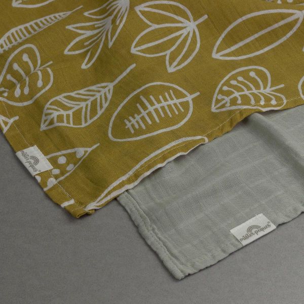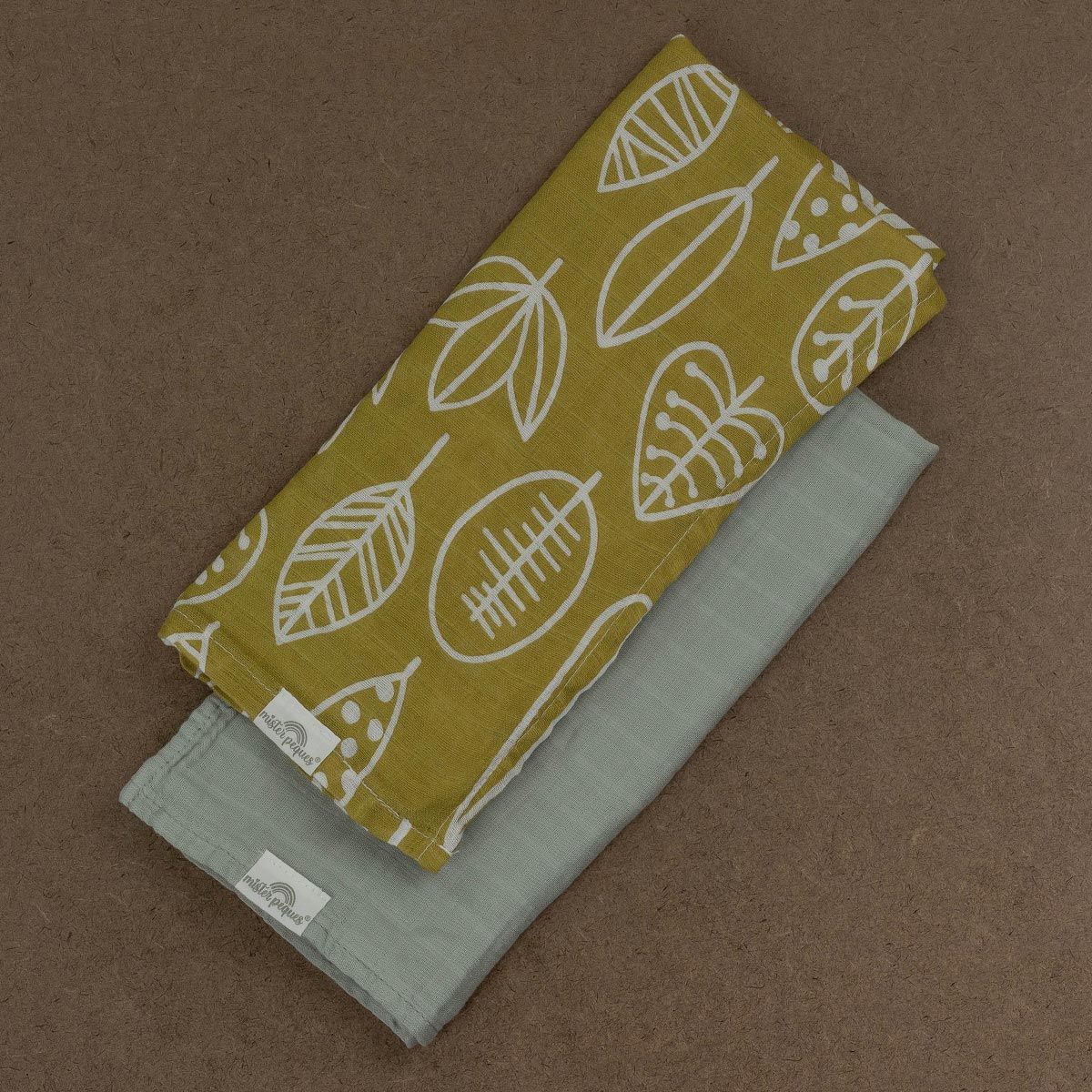PACK DE 2 MUSELINAS DE TAMAÑO 60x60 cm COLOR Y ESTAMPADO OTOÑO. fabricadas con tejido de muselina compuesto por 70% bambú y 30% algodón. Versátiles, muy suaves y absorbentes.
