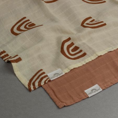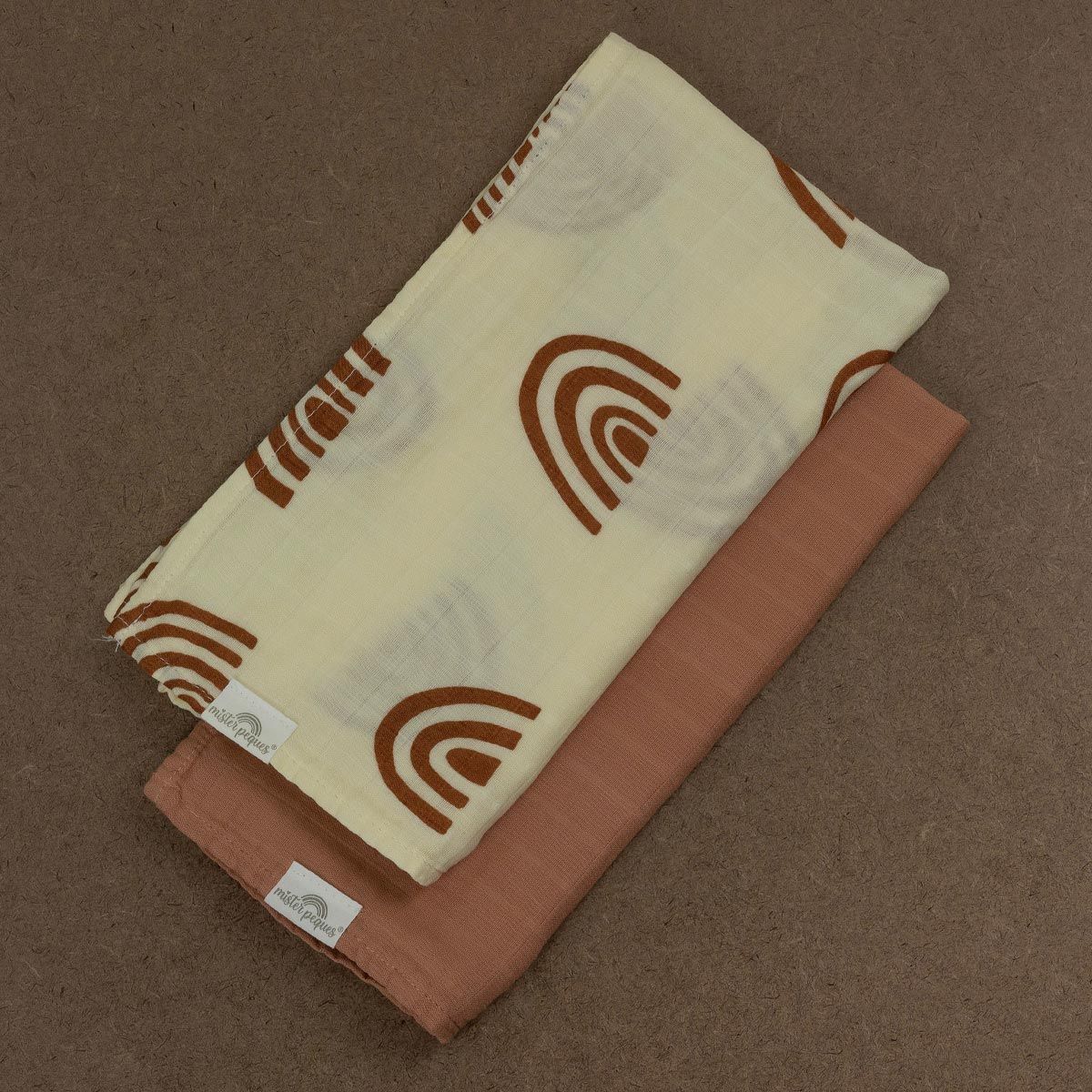 PACK DE 2 MUSELINAS DE TAMAÑO 60x60 cm COLOR Y ESTAMPADO BOHO. fabricadas con tejido de muselina compuesto por 70% bambú y 30% algodón. Versátiles, muy suaves y absorbentes.